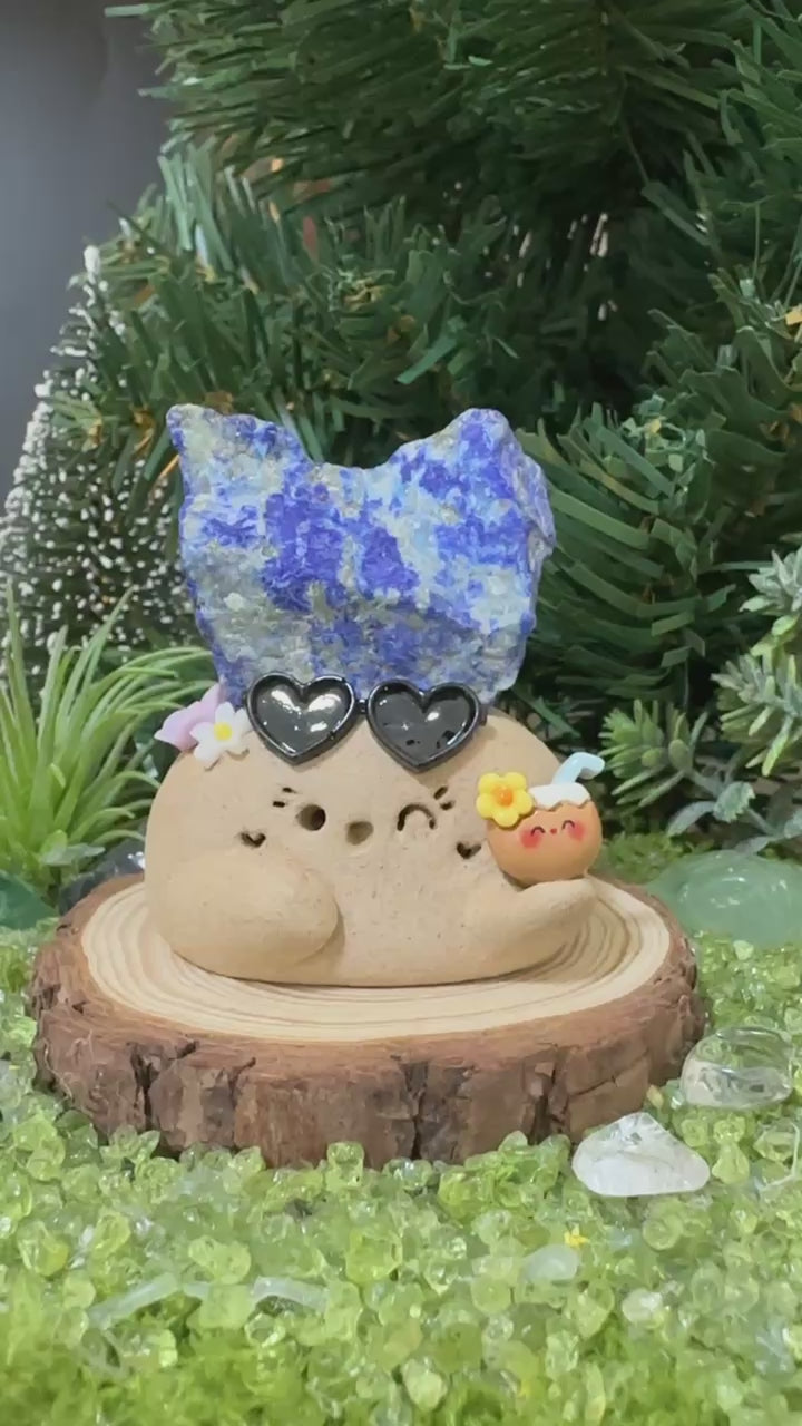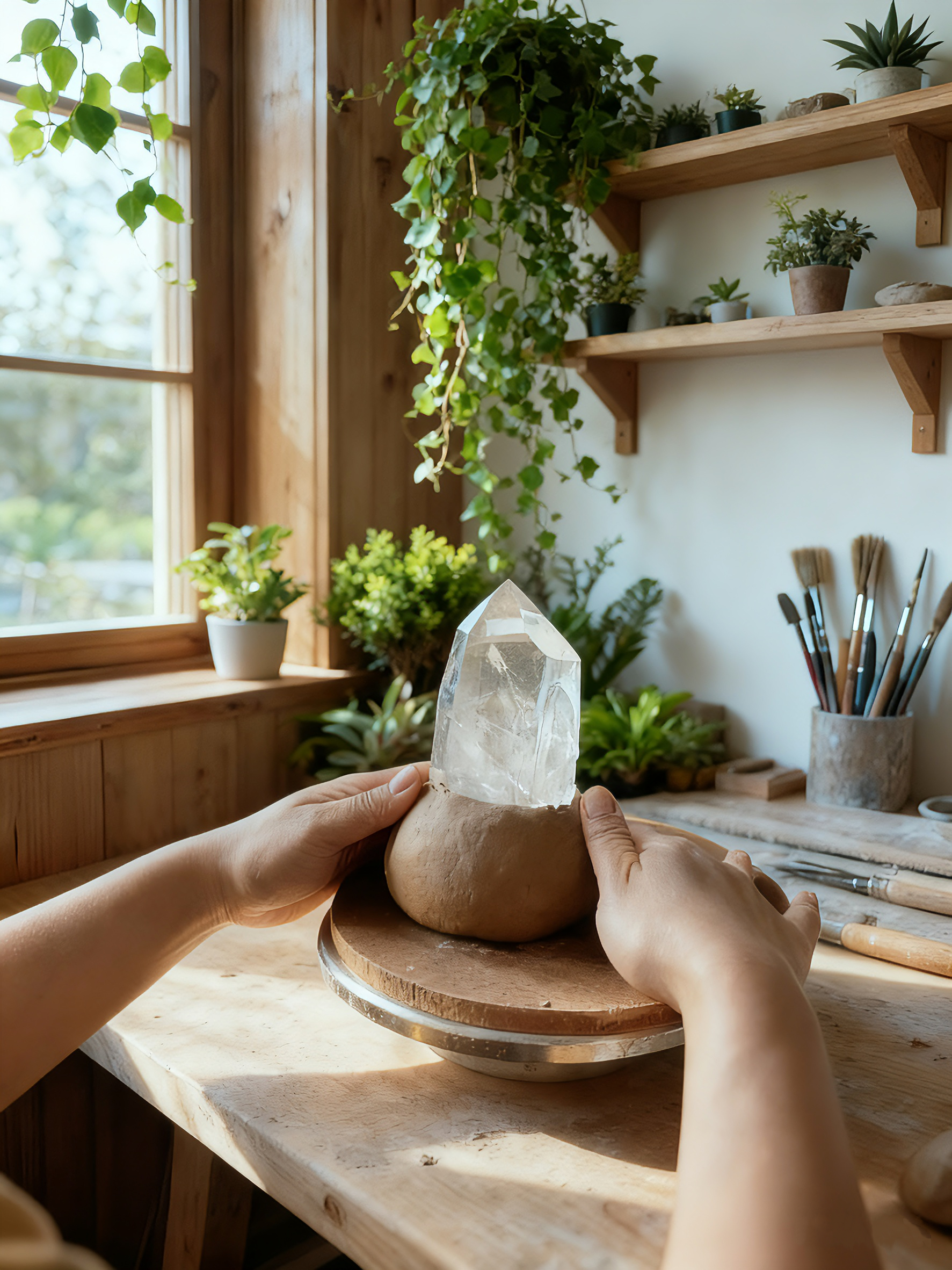 Do not wet the clay or plaster parts of the base. You can brush off dust with a soft brush. For the crystal parts, use a damp tissue to wipe.